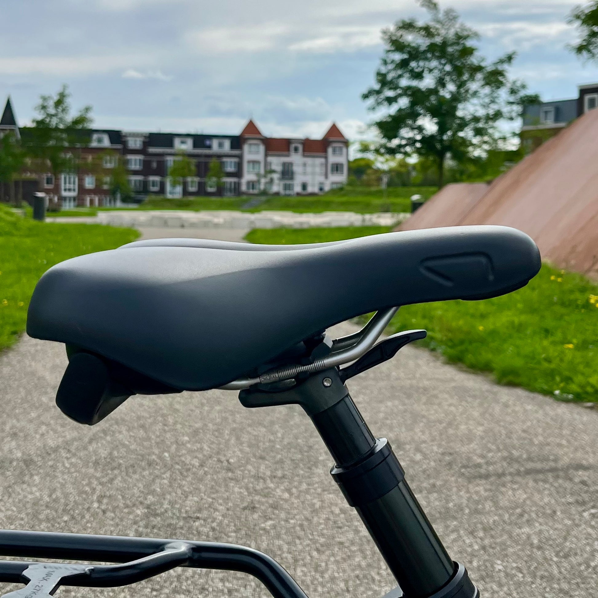 The integrated suspension adds extra comfort when riding over speed bumps, cobblestones, and other uneven surfaces. The suspension is subtle and intended to absorb small shocks without compromising the stability of the bike.