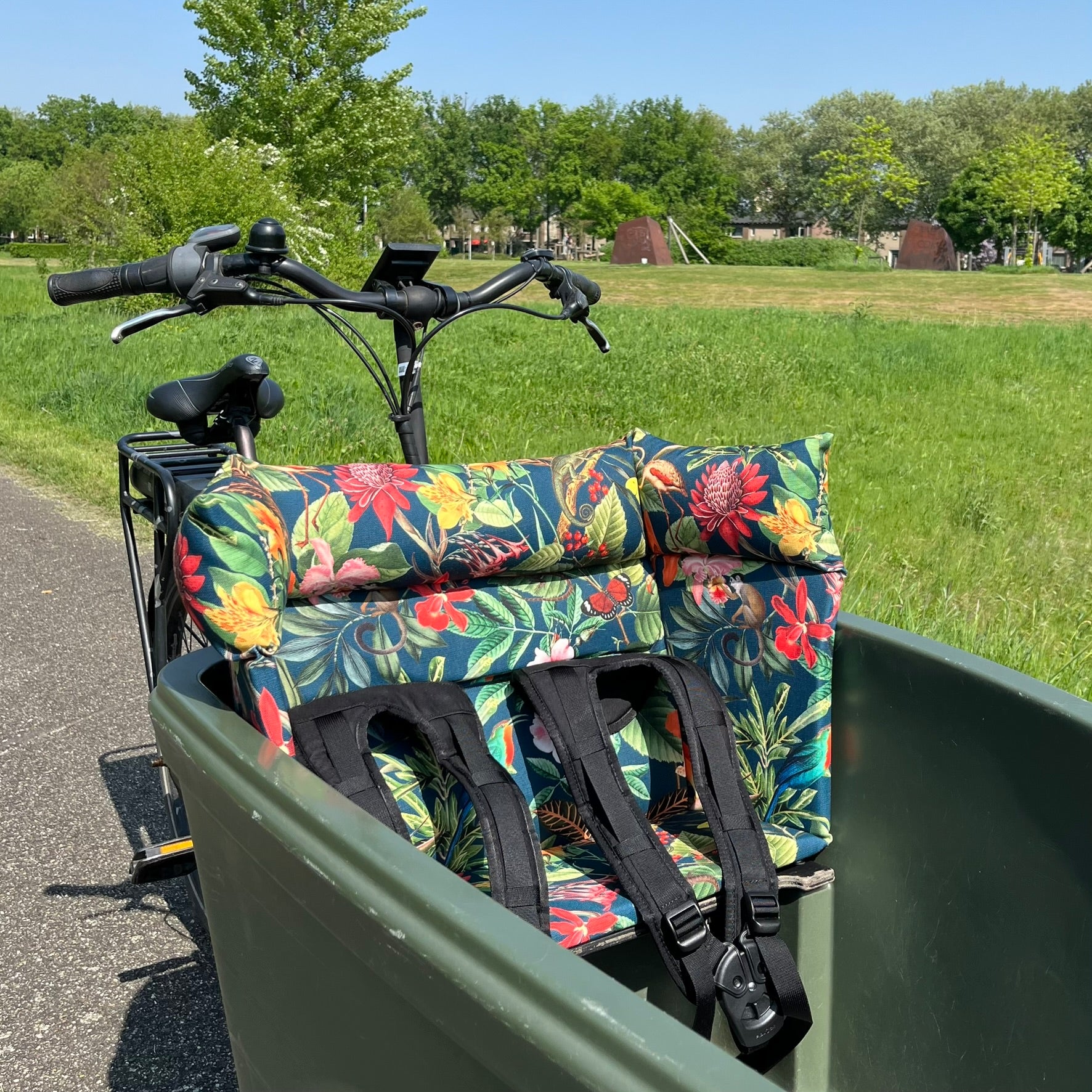 It’s suitable for all Dolly cargo bikes, whether you have a new or older seatbelt system. The cushion is produced in the Netherlands.