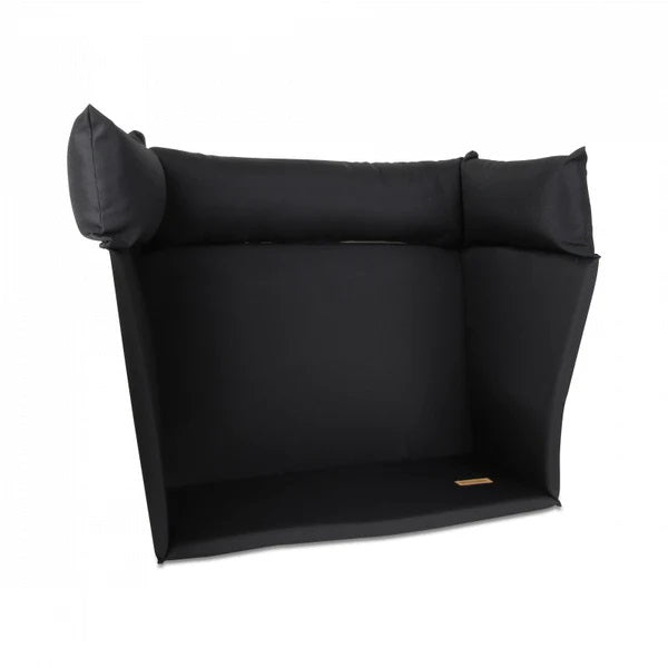 The soft seat, back panel and side panels are filled with high-quality SG40 foam rubber. This material strikes the perfect balance between comfort and firmness, giving your child all-around support. The cover is made from a durable, water-repellent outdoor fabric that can withstand rain and is easy to clean. The cushion fits perfectly in the box, even when using a rain cover.
