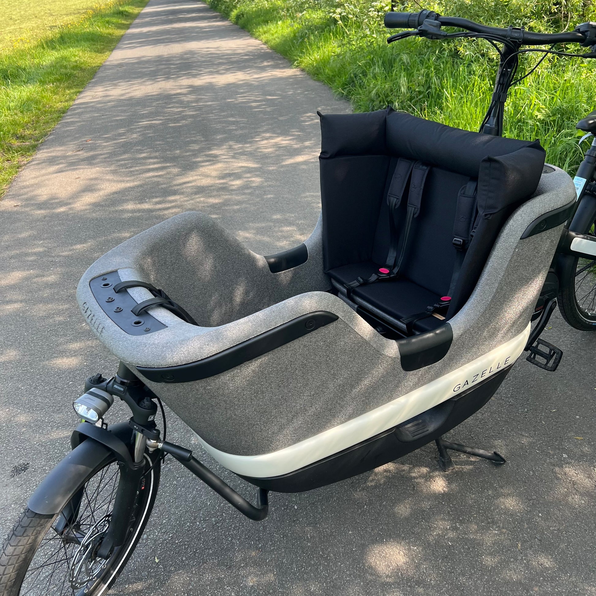 Whether you're cycling to school or heading out on a long ride – this comfortable seat cushion makes every trip in the Gazelle Makki cargo bike more enjoyable. The cushion provides extra support for the back and neck. This helps your child sit more comfortably and securely – even if they fall asleep along the way, the cushion keeps them well supported.