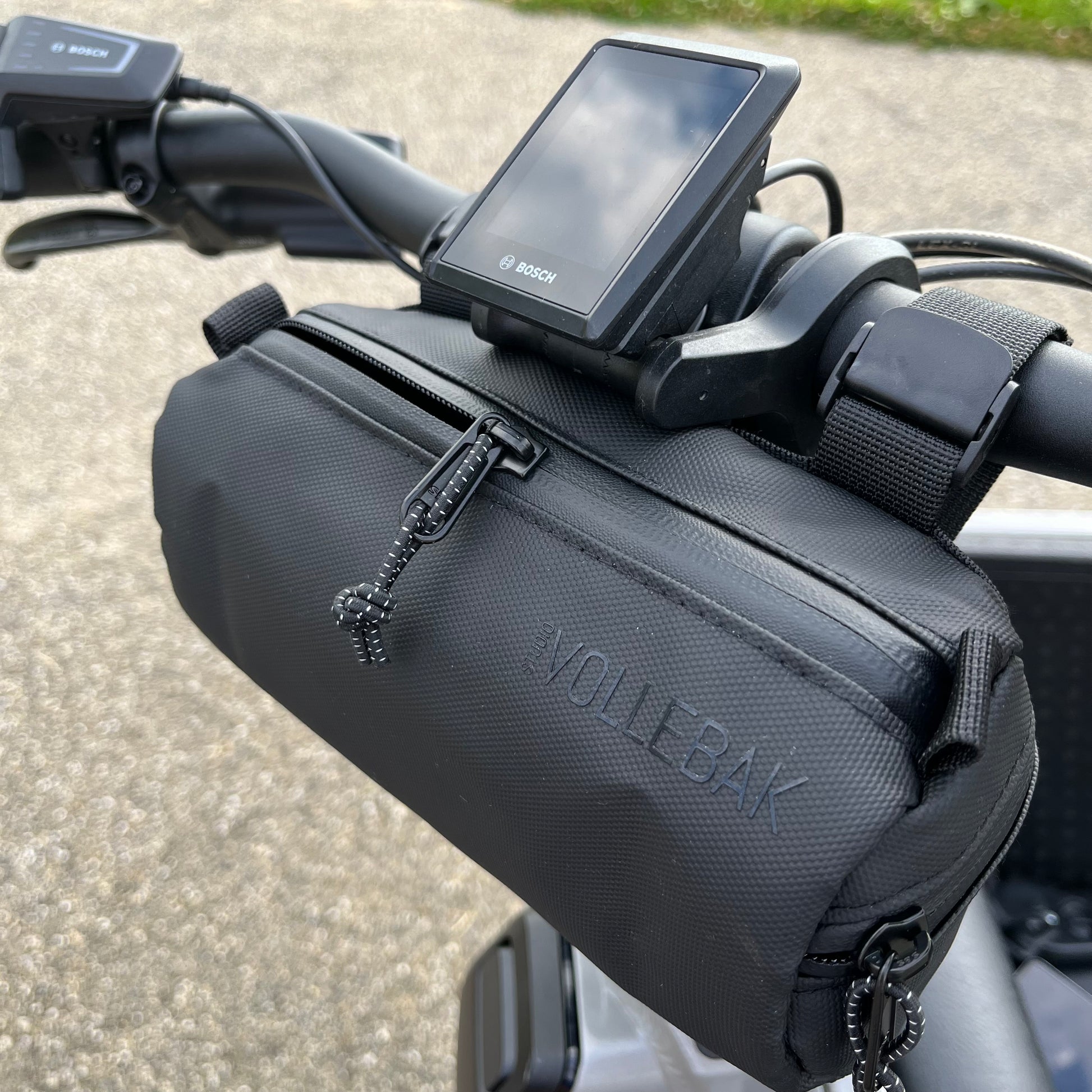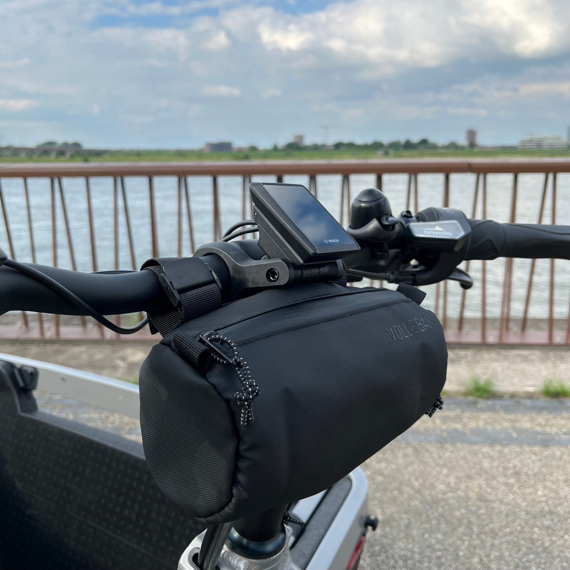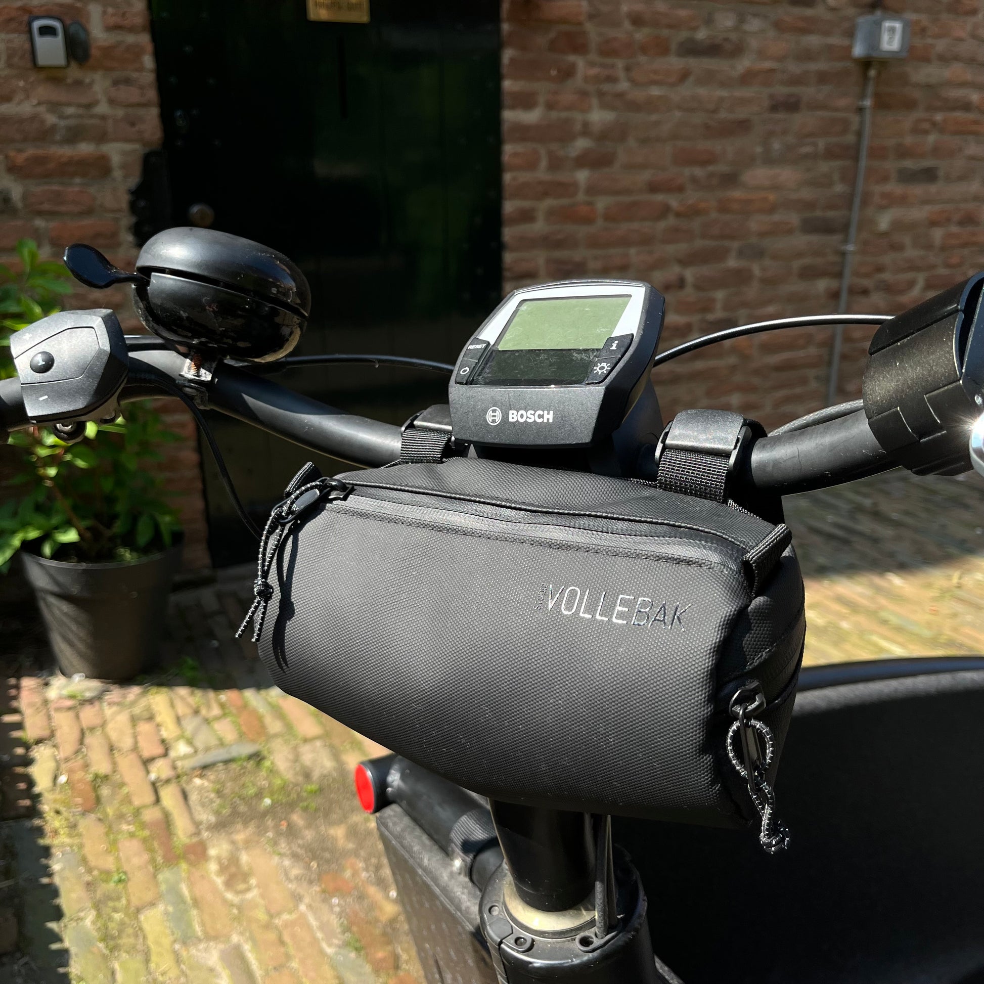 The Studio Vollebak cargo bike handlebar bag is 20 cm long, 10 cm wide and fits modern cargo bikes such as Urban Arrow, Lovens, Carqon, Gazelle, Batavus, Dolly, and onthers.