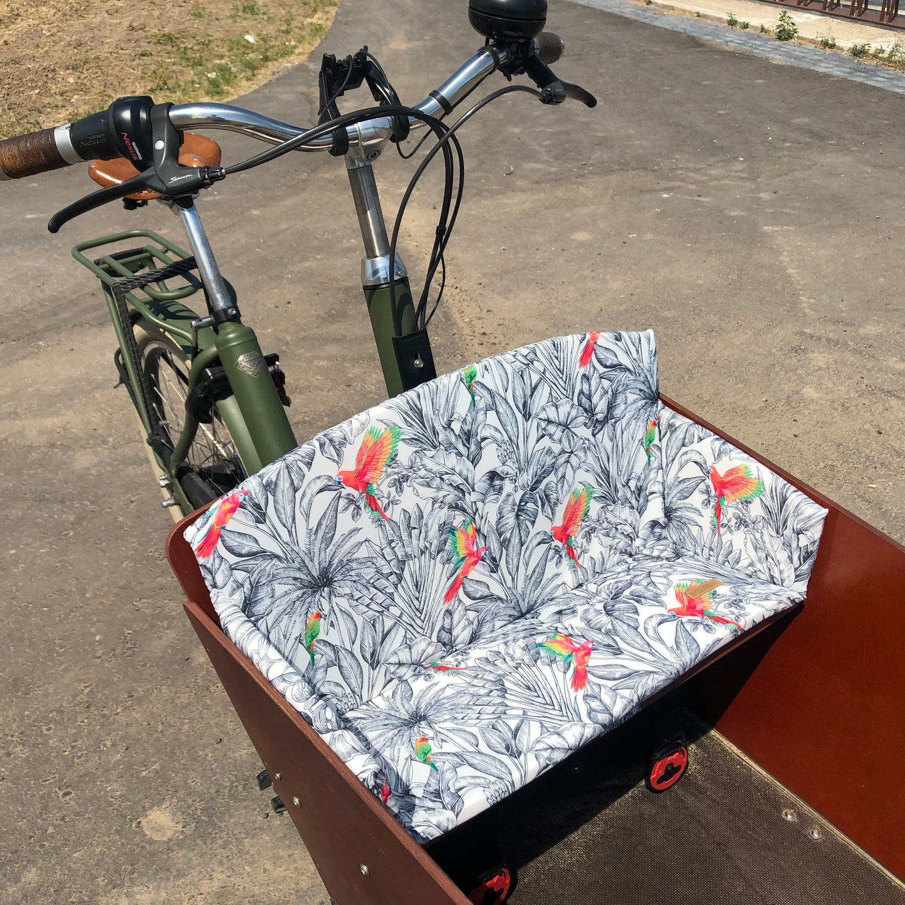 Het Studio Vollebak bakfietskussen zorgt voor extra comfort in de bakfiets. Het kussen biedt een zachtere zitting op het bankje en wordt handgemaakt in Nederland. Het is gemakkelijk te monteren in de bak en wordt vastgezet doormiddel van klittenband onder het bankje. De gebruikte stof is duurzaam en waterbestendig. Het bakfietskussen is op maat gemaakt voor de BakfietsNL.